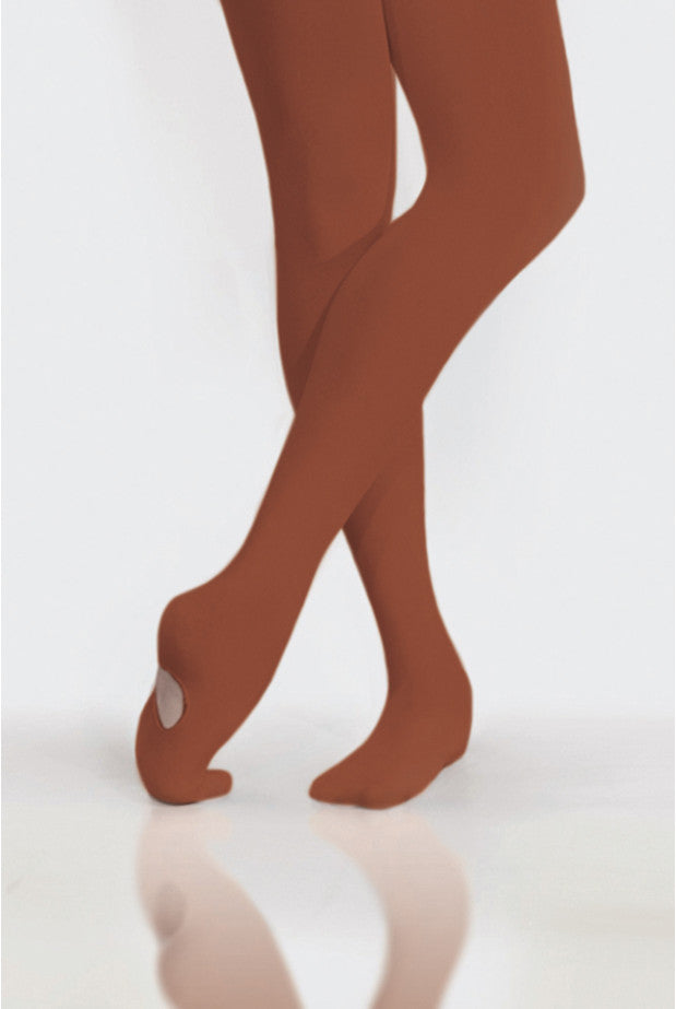 Convertible matte semi-opaque ballet tights, with soft comfortable microfiber lycra waistband, and color-matched gusset. Super-stretchy, the construction of our ballet tights offers unrivaled fit and performance. It holds shapes and washes well. without shrinking or fading. Perfect for class, rehearsal, and performance.