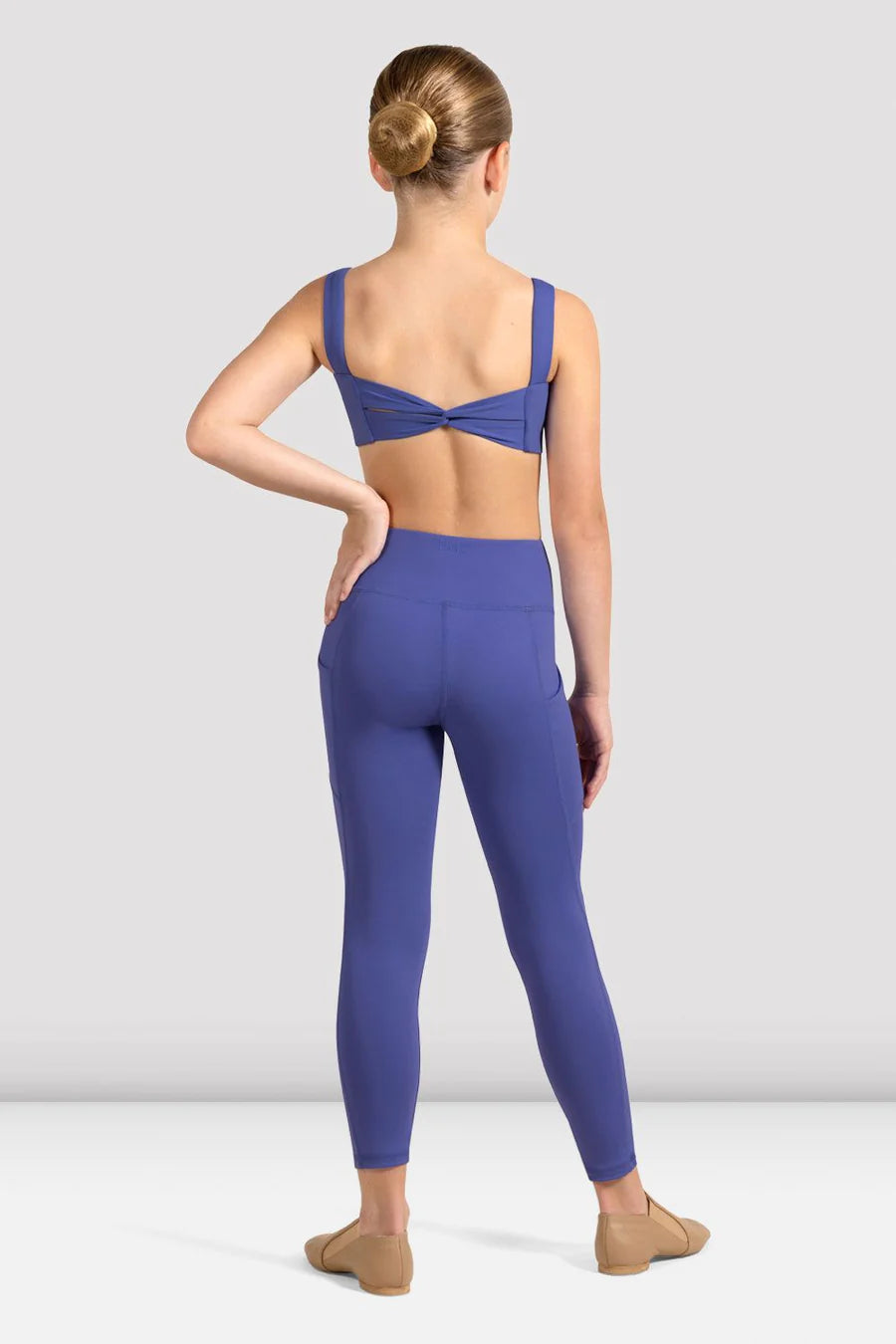 Our Girls Piera Camisole Crop Top features a twist back detail and wide camisole straps for a flattering fit. Pair with our Girls Fern 7/8 Leggings for your little ones perfect dancewear ensemble. Part of our Girls Petite Fleurs Collections; let your little one bloom with every step in this enchanting collection that captures the magic of dance. Featuring delicate embroidered floral motifs, each design is created from our signature performance fabric and comes in a trio of classic tones.